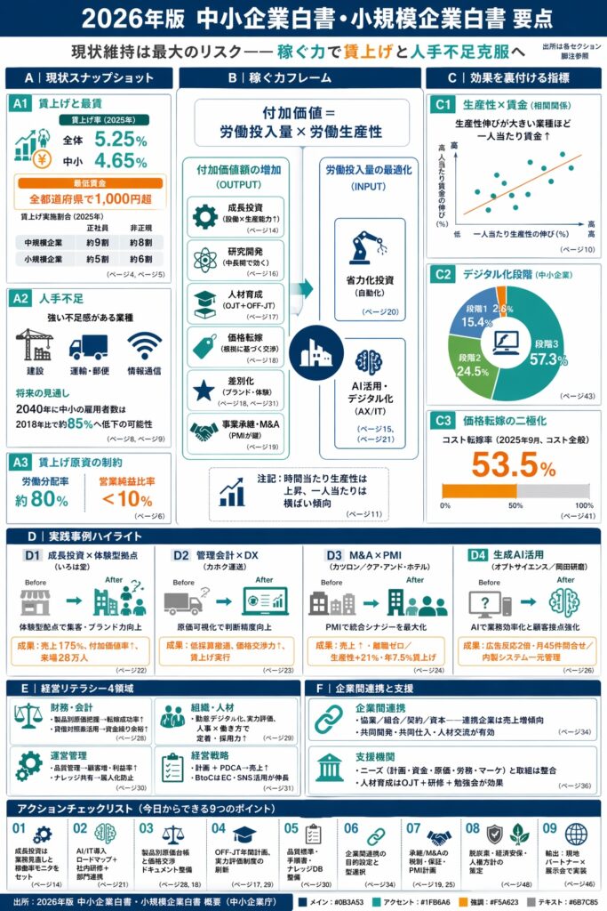 - 白書は相互補完による企業間連携を、小規模事業者の現実的な成長手段として提示。